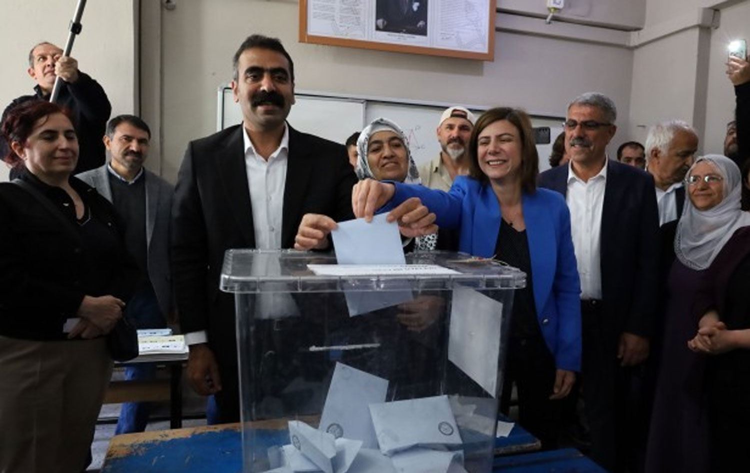 Halkların Eşitlik ve Demokrasi Partisi (DEM Parti) Diyarbakır Büyükşehir Belediyesi eşbaşkan adayları Serra Bucak ve Doğan Hatun oyunu kullandı.