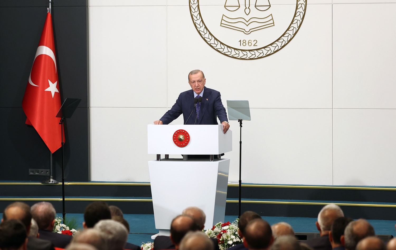 Erdoğan "Türkiye'yi hedeflerine ulaştırmadan huzura ermeyeceğiz. Bunun için yürütme, yasama, yargı arasında uyumlu bir işbirliğinin tesisi çok mühimdir" dedi.