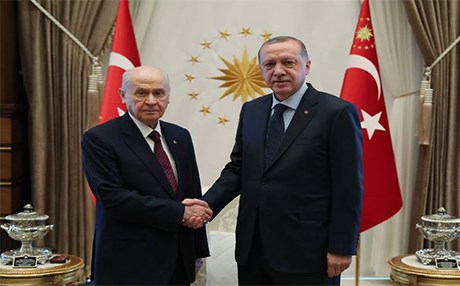 Haber Merkezi - Türkiye Cumhurbaşkanı Recep Tayyip Erdoğan, Milliyetçi Hareket Partisi (MHP) Genel Başkanı Devlet Bahçeli'yi Cumhurbaşkanlığı Külliyesi'nde kabul etti.