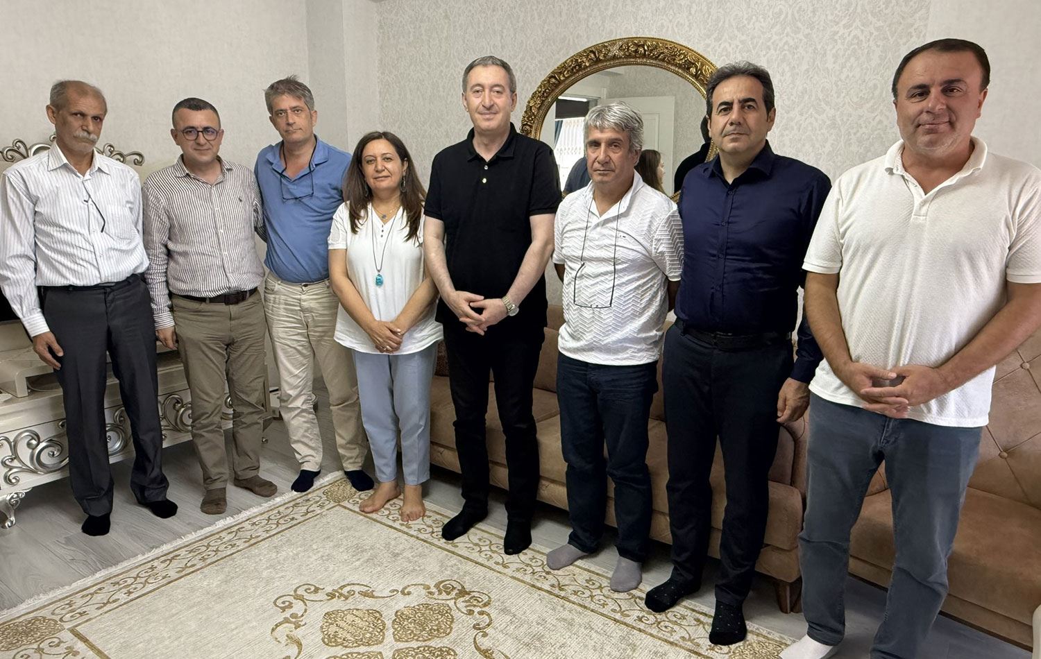 DEM Parti Eş Genel Başkanı Bakırhan (sol 5) İmralı’dan tahliye edilen Veysi Aktaş’ı (sol 6) ziyaret etti.