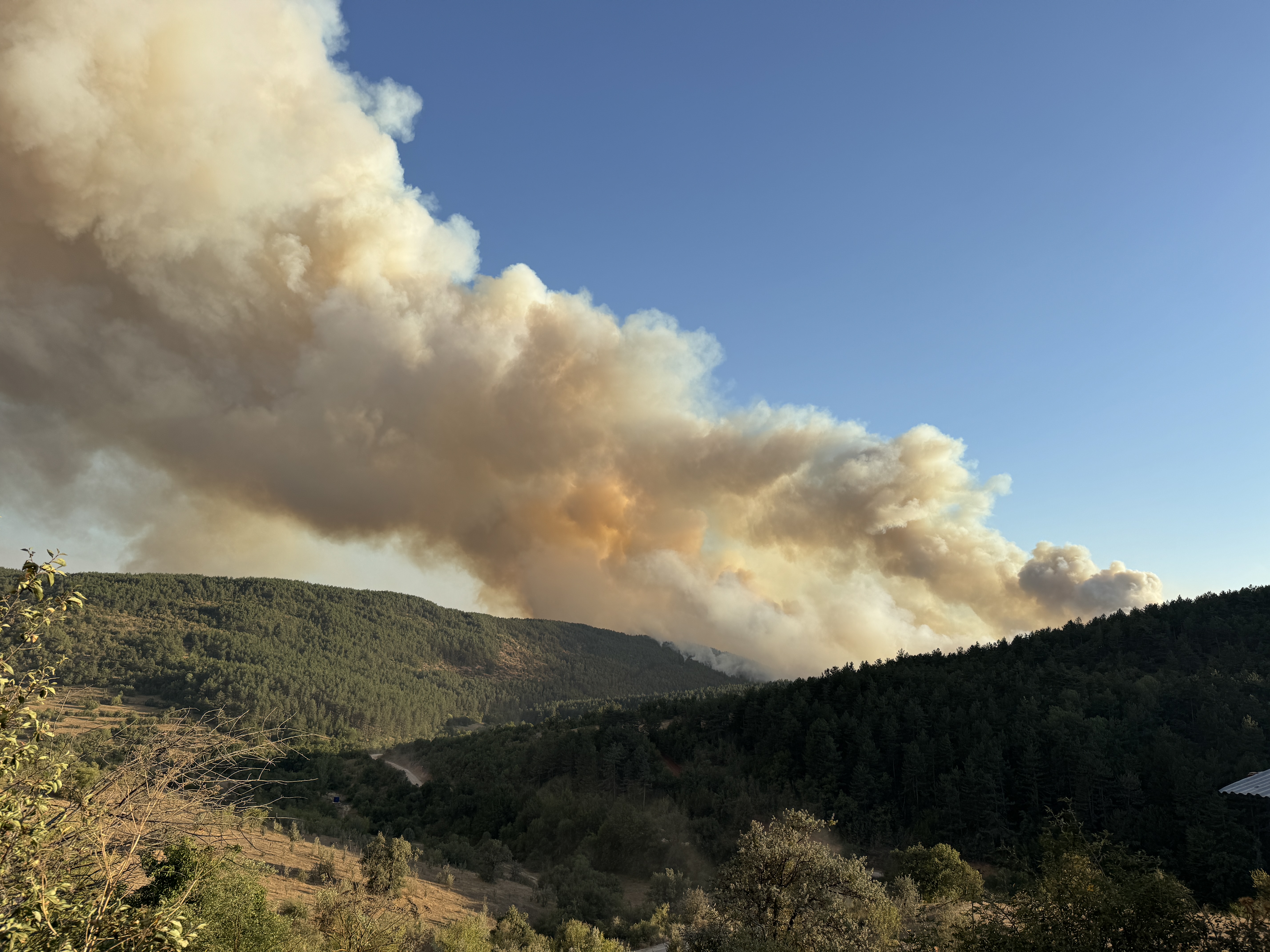 Açıklamada şiddetli rüzgar nedeniyle genişleyen orman yangınını kontrol altına alma çalışmalarına devam edildiği belirtildi.