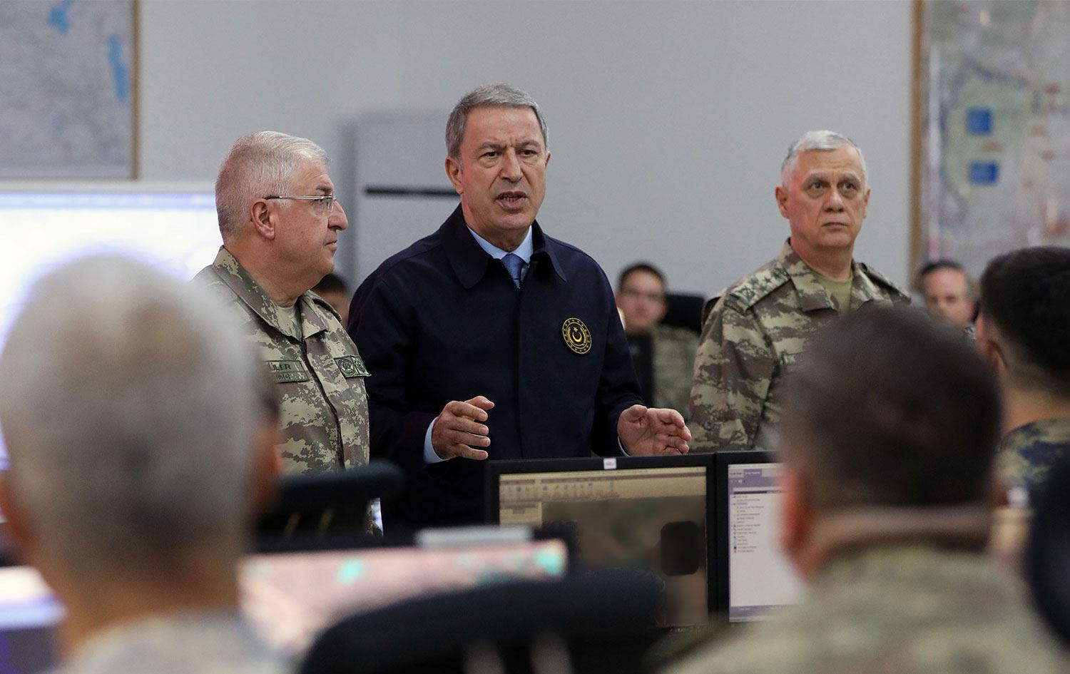 Hulusi Akar, Genelkurmay Başkanı Yaşar Güler ve Kara Kuvvetleri Komutanı Ümit Dündar'la Rojava sınırının sıfır noktasındaki incelemelerde bulundu.