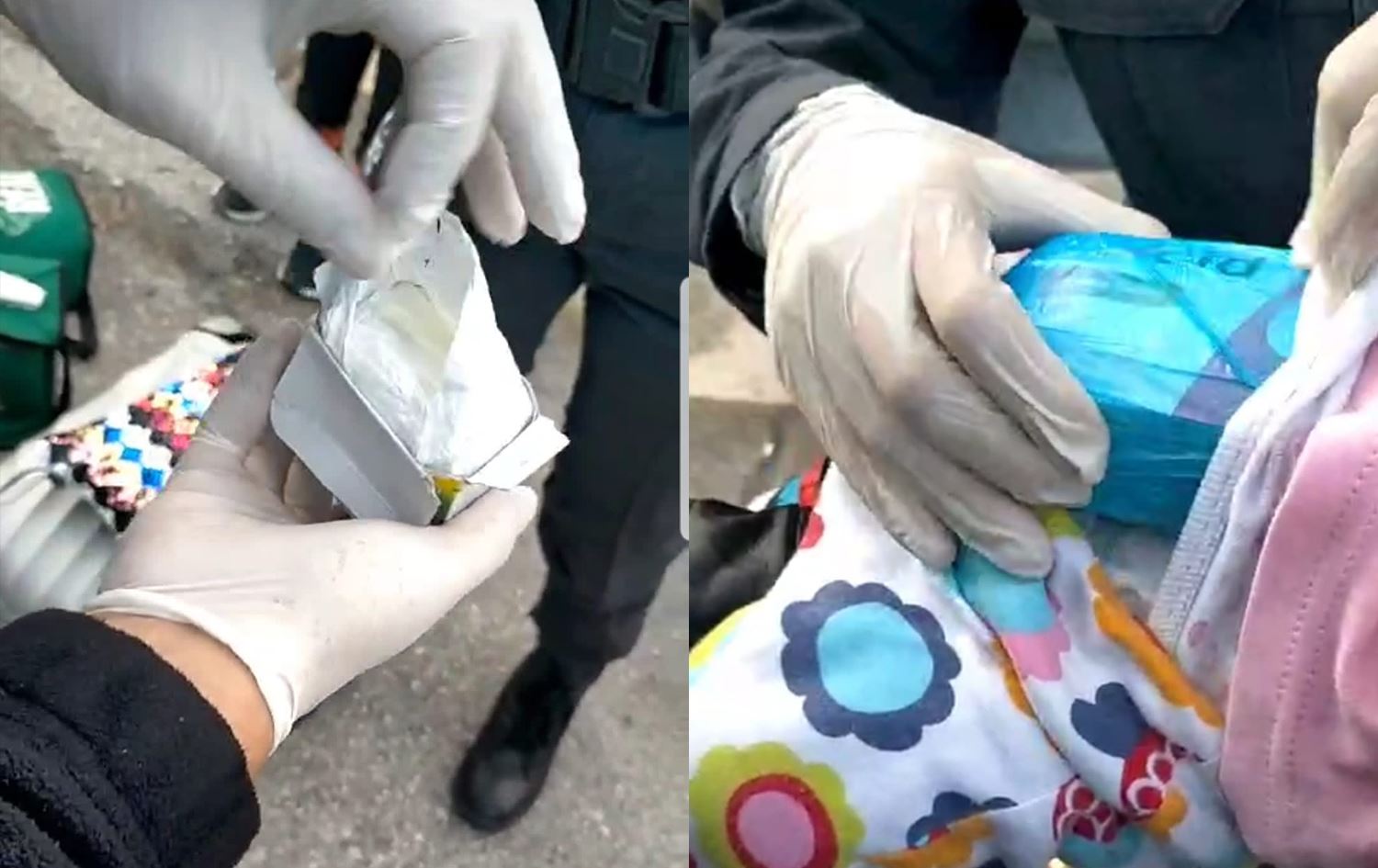 Şüphelilerin üzerinde bir bulguya rastlayamayan ekipler, D.D'nin 3 aylık bebeği T.K'nın karın bölgesinde ilaç kutusu içerisine gizlenmiş 162,55 gram metamfetamin ele geçirdi.