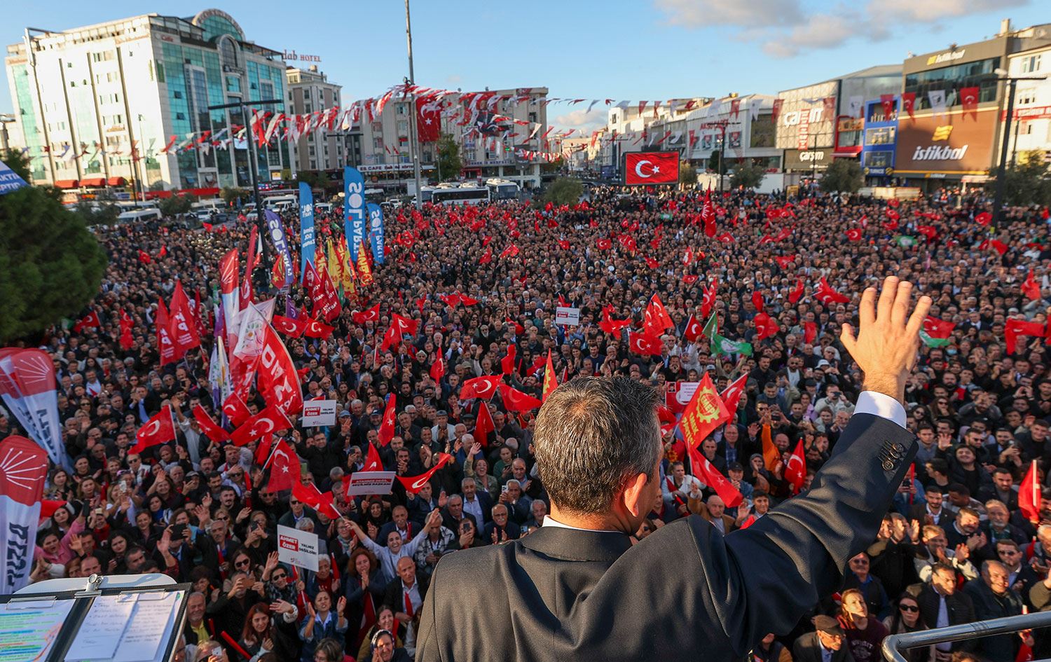CHP Lideri Özgür Özel ve İBB Başkanı Ekrem İmamoğlu mitingin yapılacağı Esenyurt Cumhuriyet Meydanı'na geldi.