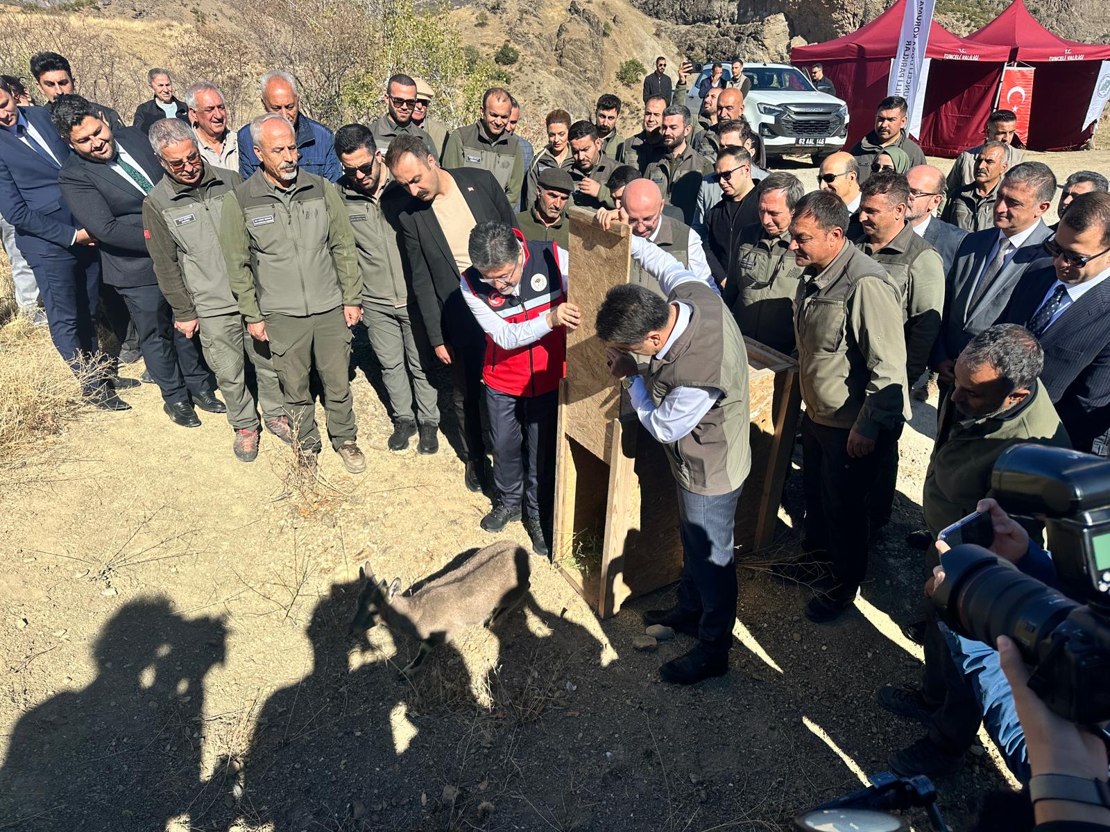 Dersim ( Rûdaw ) – Türkiye Tarım ve Orman Bakanı İbrahim Yumaklı, bir dizi ziyarette bulunmak üzere Dersim'e geldi. Bakan Yumaklı'nın programı kapsamında, daha önce yaralı halde bulunarak tedavi edilen yavru dağ keçisinin doğaya salınma töreni düzenlendi. Ancak törende beklenmedik anlar yaşandı. Doğa Koruma ve Milli Parklar Müdürlüğü ekipleri yavru dağ keçisinin doğal ortamına dönmesi için uzun uğraşlar verdi.