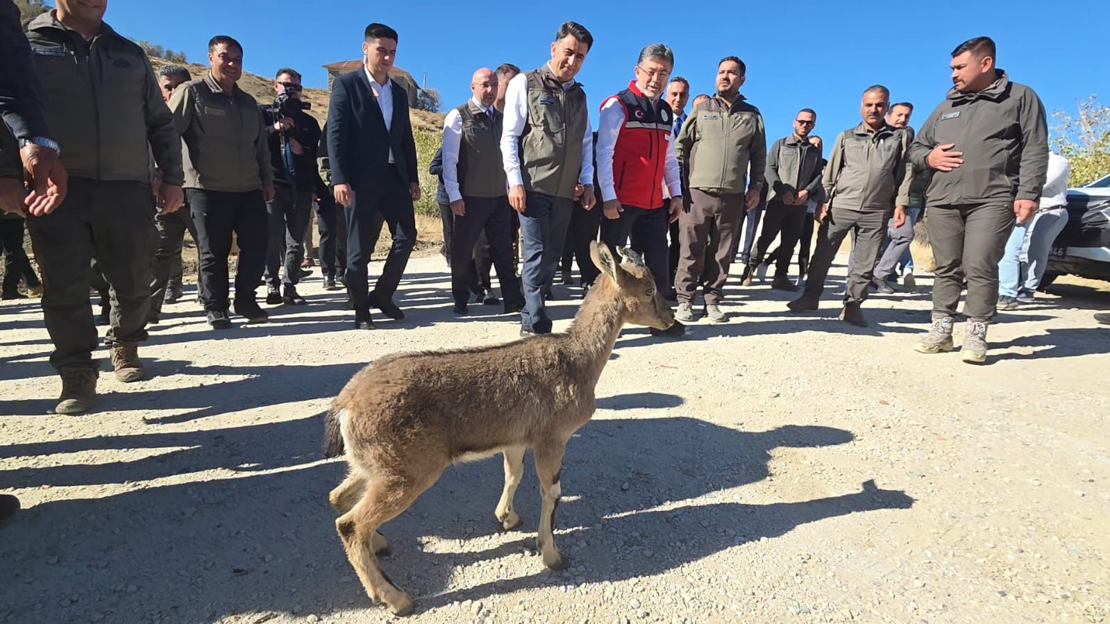 Tarım ve Orman Bakanı İbrahim Yumaklı'nın konuşmasının ardından DKMP ekipleri yavru dağ keçisini yakalanarak başka bir nokta tekrardan doğal ortamına bıraktı.