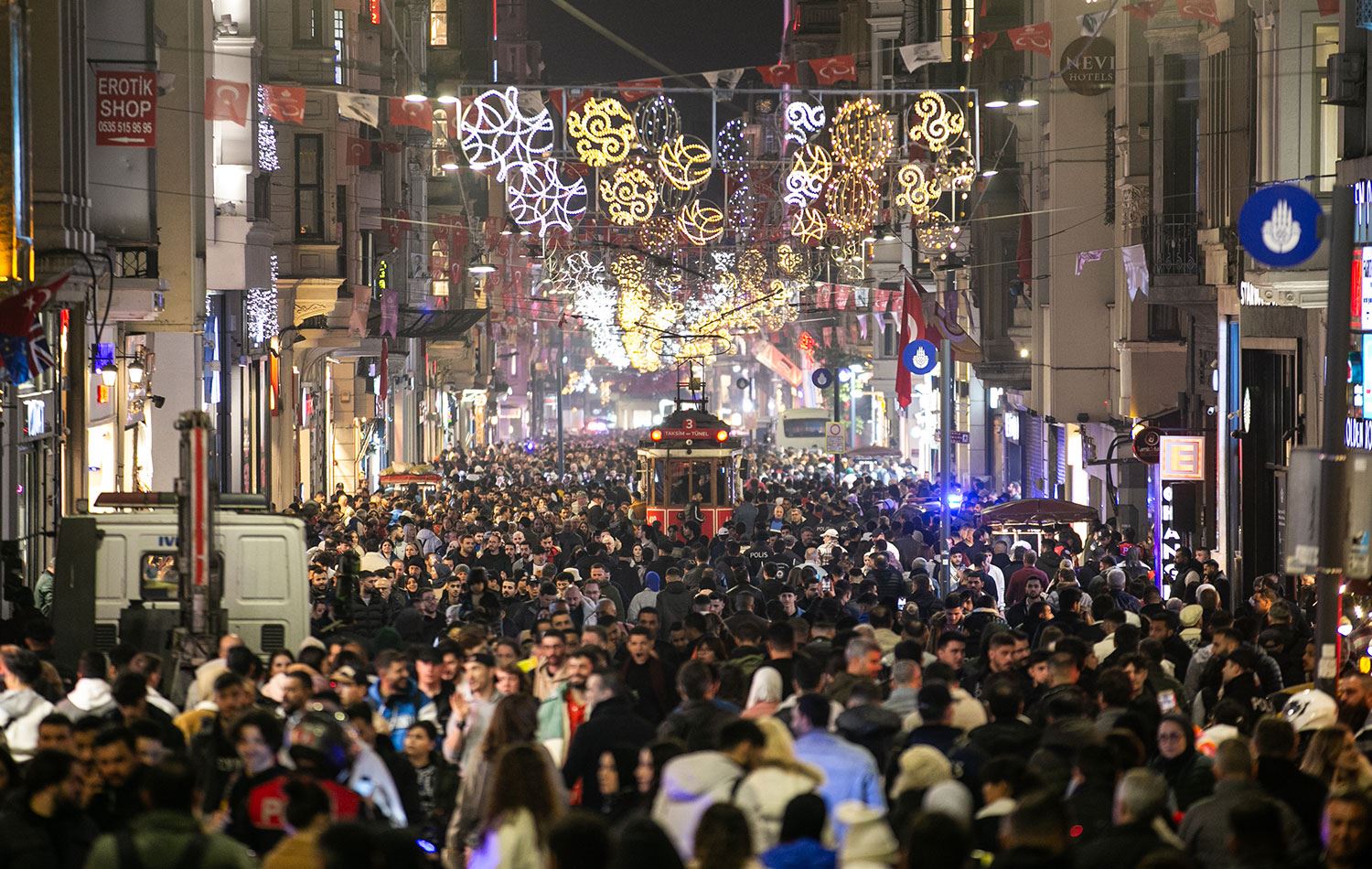 Yılbaşı kutlamaları için yerli ve yabancı binlerce kişi, kentin en işlek noktalarından Taksim Meydanı ve İstiklal Caddesi'ne geldi. Kalabalık nedeniyle meydanda ve caddede yürümekte güçlük çekiliyor.