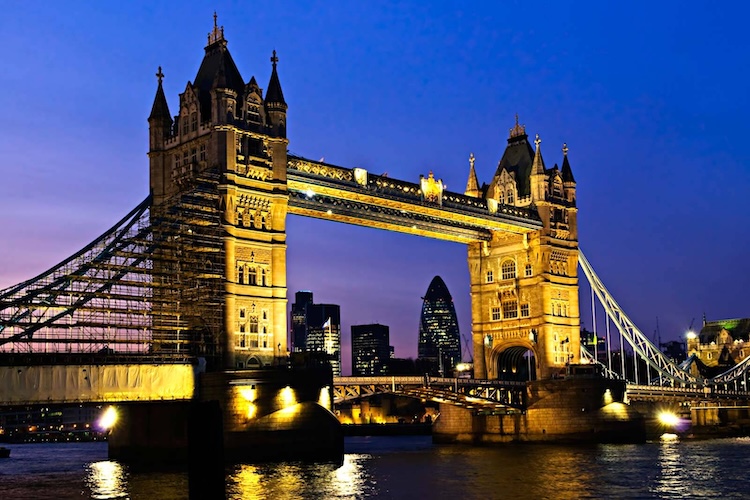 Tower Bridge, kaleli yapısıyla Viktorya rüyasının demirden nakışıdır. İki gotik kule gökyüzüne mızrak gibi saplanır; gece maviye büründüğünde ışıklar nehirde erir. Londra’nın kalbi sessizce bir şarkı söyler.