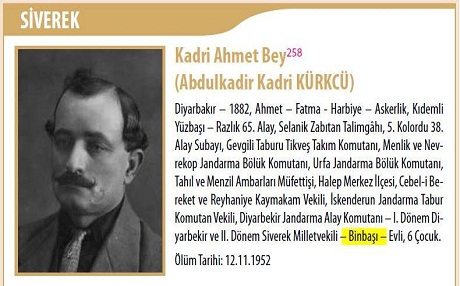 Birinci basımı Nisan 2010’da yapılan TBMM meclis albümünün, ilk cildi 1920-2010 yılları arasında görev almış vekillerin biyografilerini içeriyor. Özellikle meclisin birinci döneminde, Şeyh Said’le birlikte hareket ettikleri için asılan Kürt liderleri gibi, Kürt katliamlarında görev almış vekiller de çokça yer kaplıyor. Bunlardan biri de mazbatası “Kadri” adına düzenlenen ve daha sonra isim defteri ile tutanaklara Kadri Ahmet olarak geçen Abdülkadir Kadri Kürkcü.