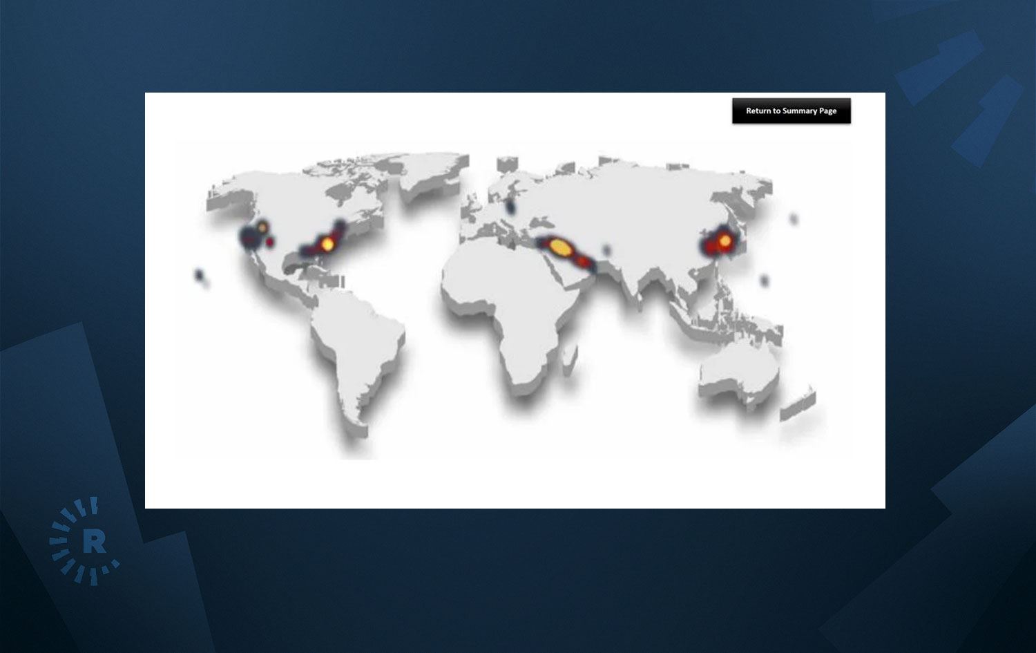 Orta Doğu'nun Kürdistan Bölgesi ve Rojava da dahil Irak ve Suriye'yi de içeren bir bölgesi, UFO gözlem noktaları olarak gösteriliyor.