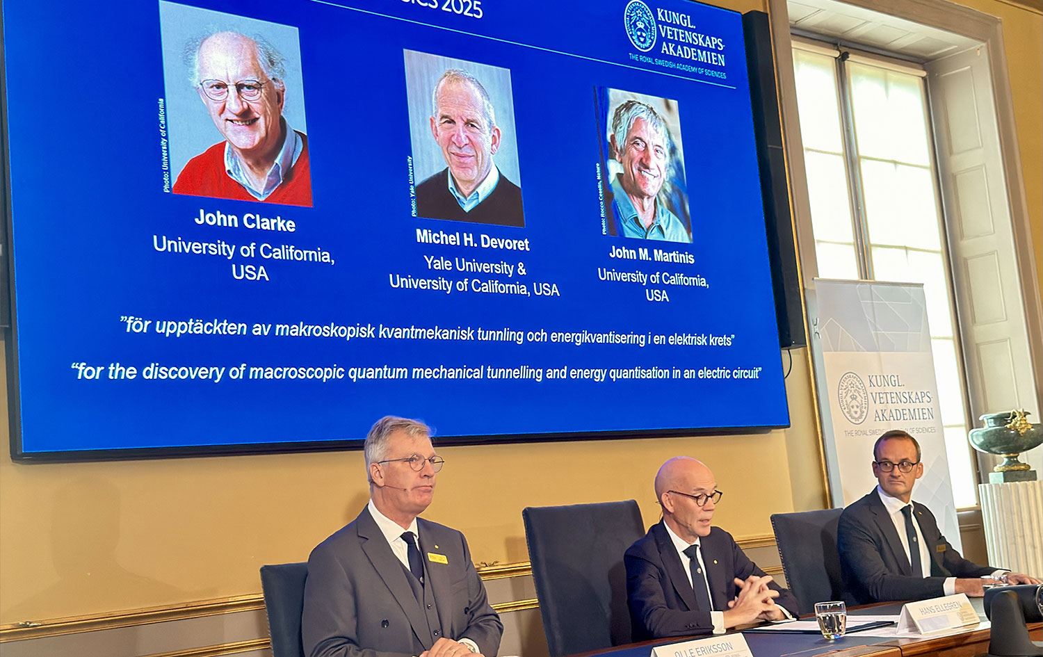 İsveç Kraliyet Bilimler Akademisi'nde düzenlenen basın toplantısında, 2025 Nobel Fizik Ödülü'nün sahipleri açıklandı.