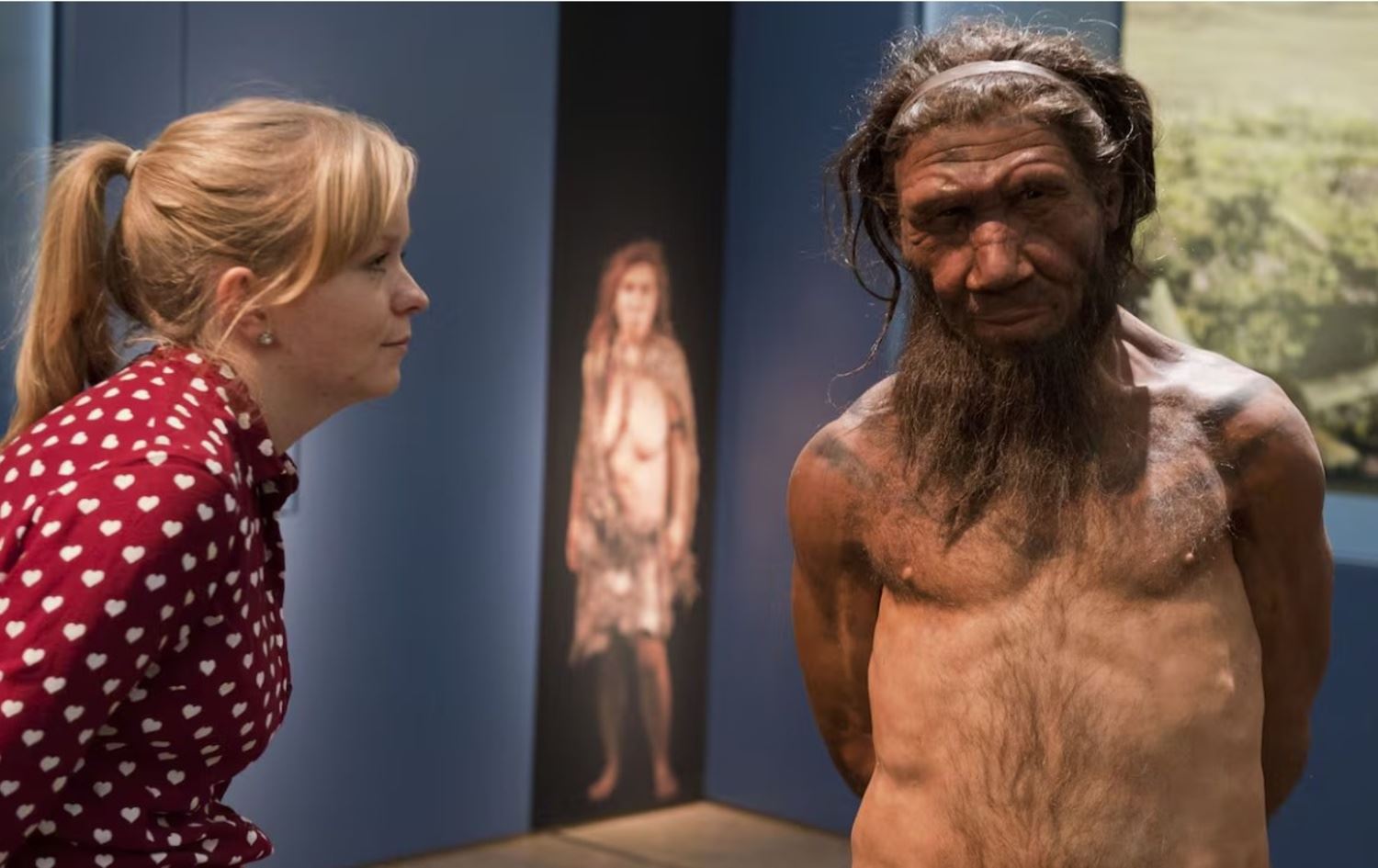 Bir kadın Londra Müzesinde, Neandertal insanı tasvir eden bir balmumu heykelini inceliyor Foto: AFP