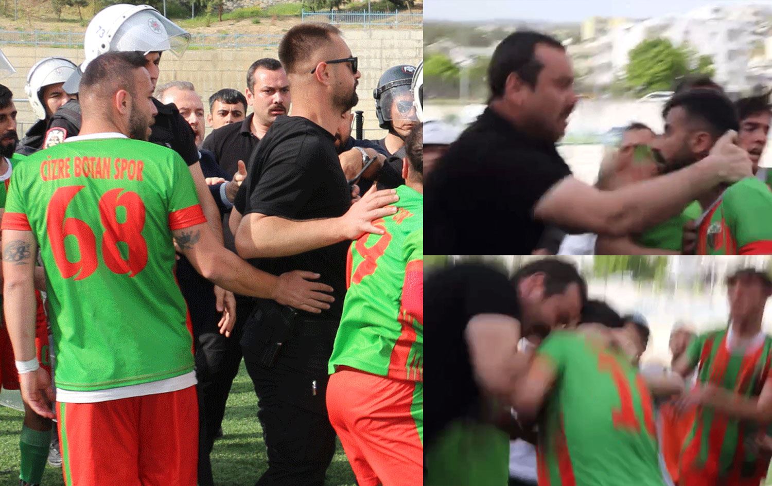 Emniyet Amiri Şuayip Öğdür’ün koruması polis A.A., Cizre Botanspor futbolcusuna kafa attı. Bu hareketin ardından sahada ve tribünlerde tansiyon daha da yükseldi.