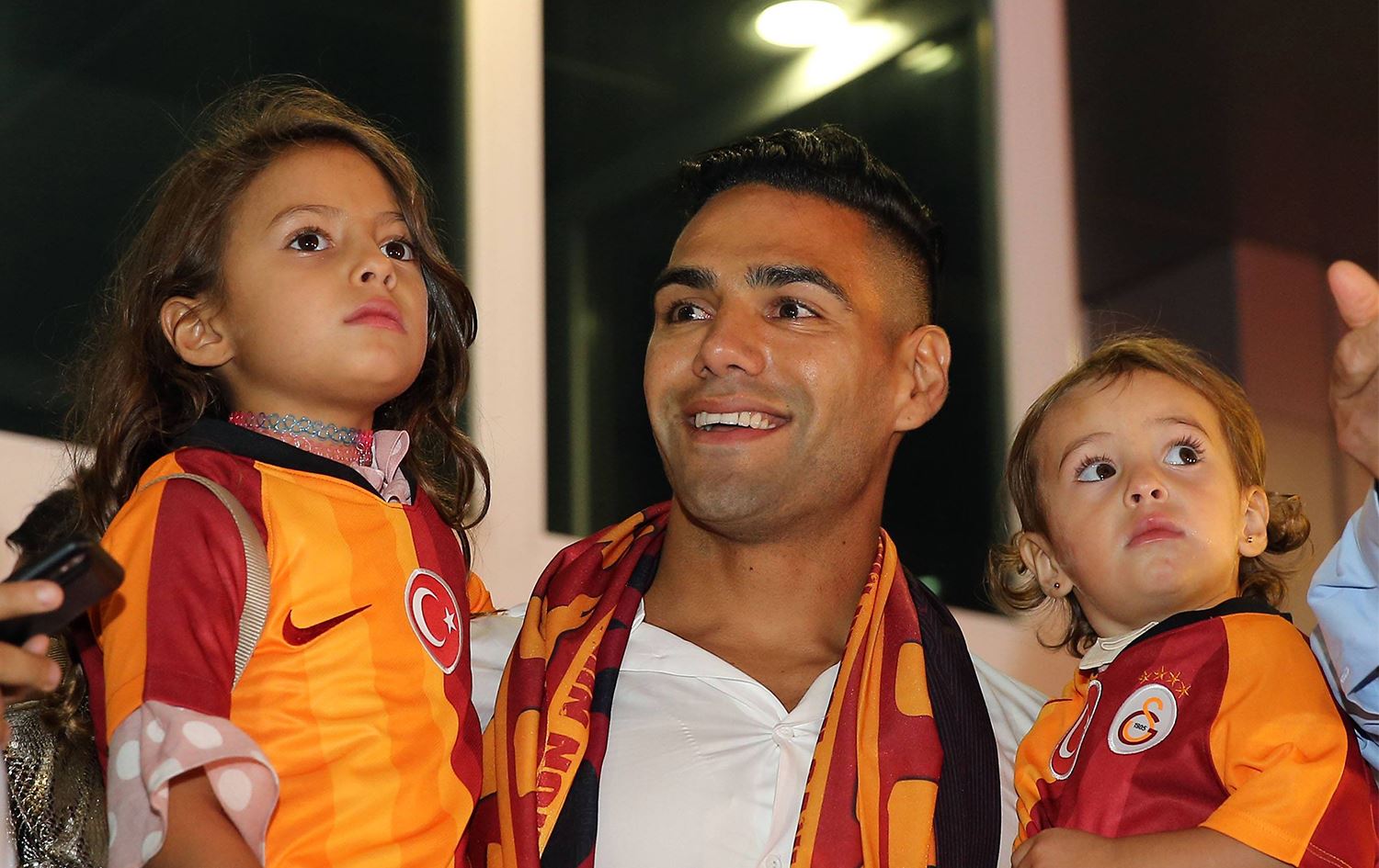 Radamel Falcao, Galatasaray forması giyen eşi ve kızları ile terminal binasının önüne çıkarak, meşaleler yakıp, şampiyonluk şarkıları söyleyen taraftarları selamladı.
