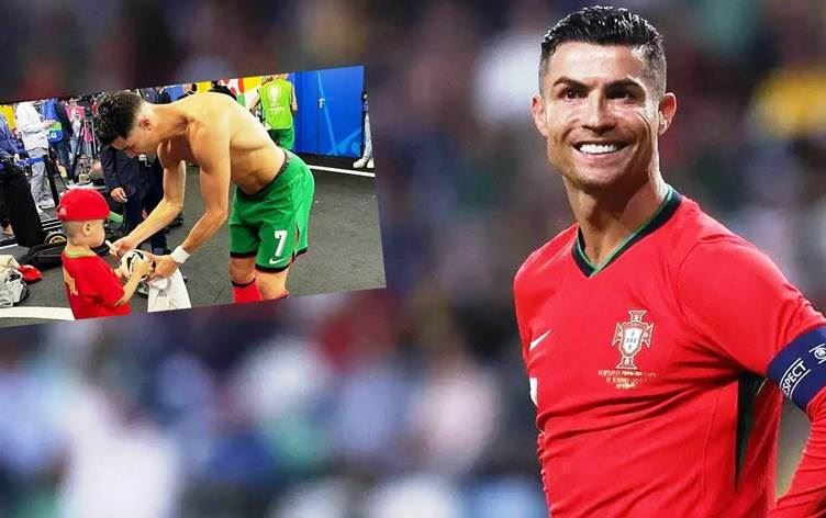Almanya’nın Frankfurt kentinde oynanan Portekiz -Slovenya maçının ardından soyunma odasına geçen yıldız futbolcu Ronaldo, Kamışlolu kanser hastası 4 yaşındaki Awar Hozan’ı ve ailesini karşılayarak küçük çocuğun hayallerini gerçekleştirdi.