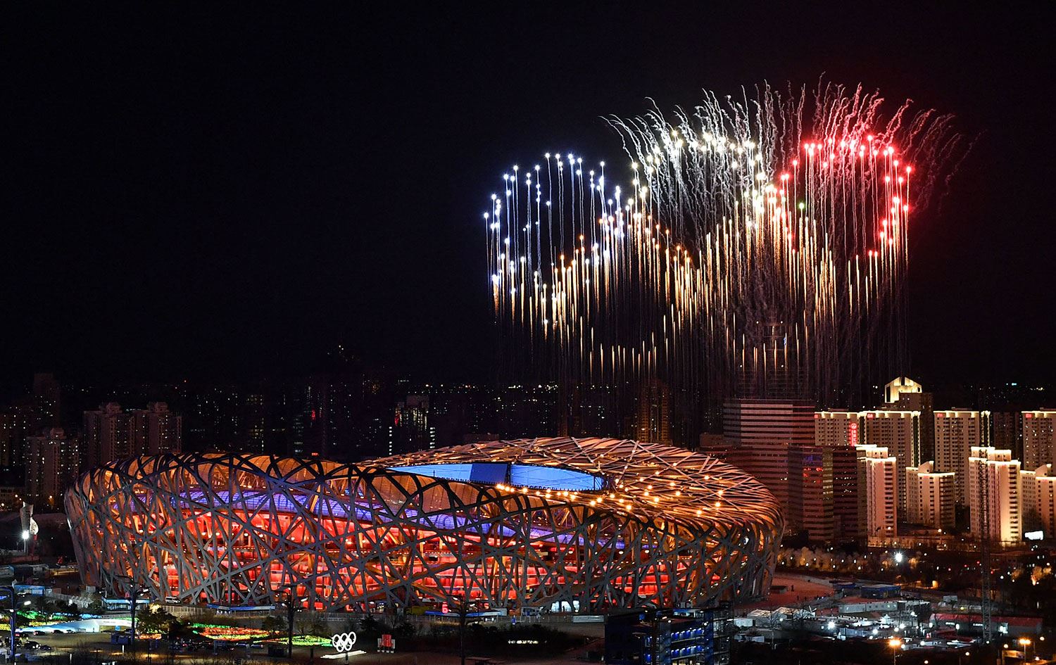 Kış Olimpiyatları, 2008 Yaz Olimpiyatları için inşa edilen ve tasarımından ötürü "Kuş Yuvası" adı verilen Ulusal Stadyum'daki törenle resmen başladı.