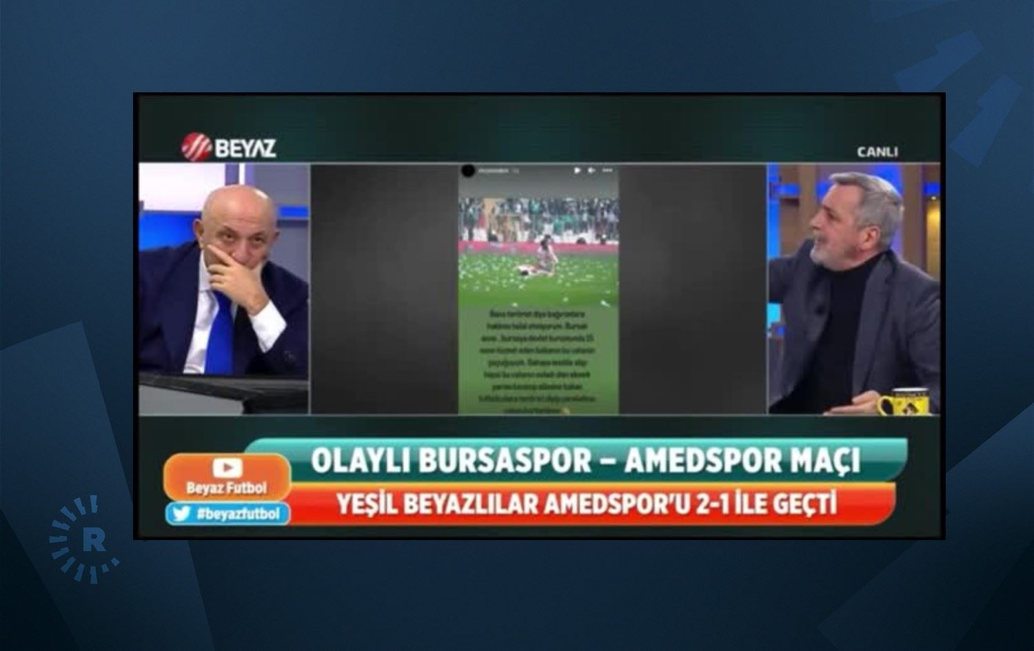 Daha sonra ise Amedspor'un resmi sosyal medya hesaplarından maç öncesinde sahada ve tribünlerin karıştığı görüntüler paylaşıldı. Amedspor oyuncularına saldırı düzenlendi, pek çok yabancı madde saha içine atıldı.