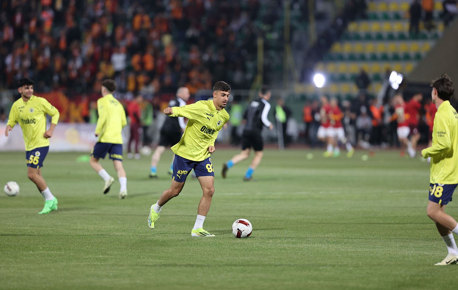 Stadyuma giden takım, Süper Kupa maçı öncesi kısa bir ısınma idmanının ardından soyunma odasına girdi.