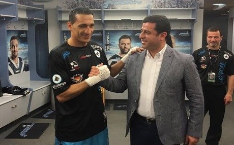 Almanya'da bulunan Halkların Demokratik Partisi (HDP) Eşbaşkanı Selahattin Demirtaş kıtalar arası orta siklet şampiyonluk maçına çıkan boksör İsmail Özen'in müsabakasını izledi.