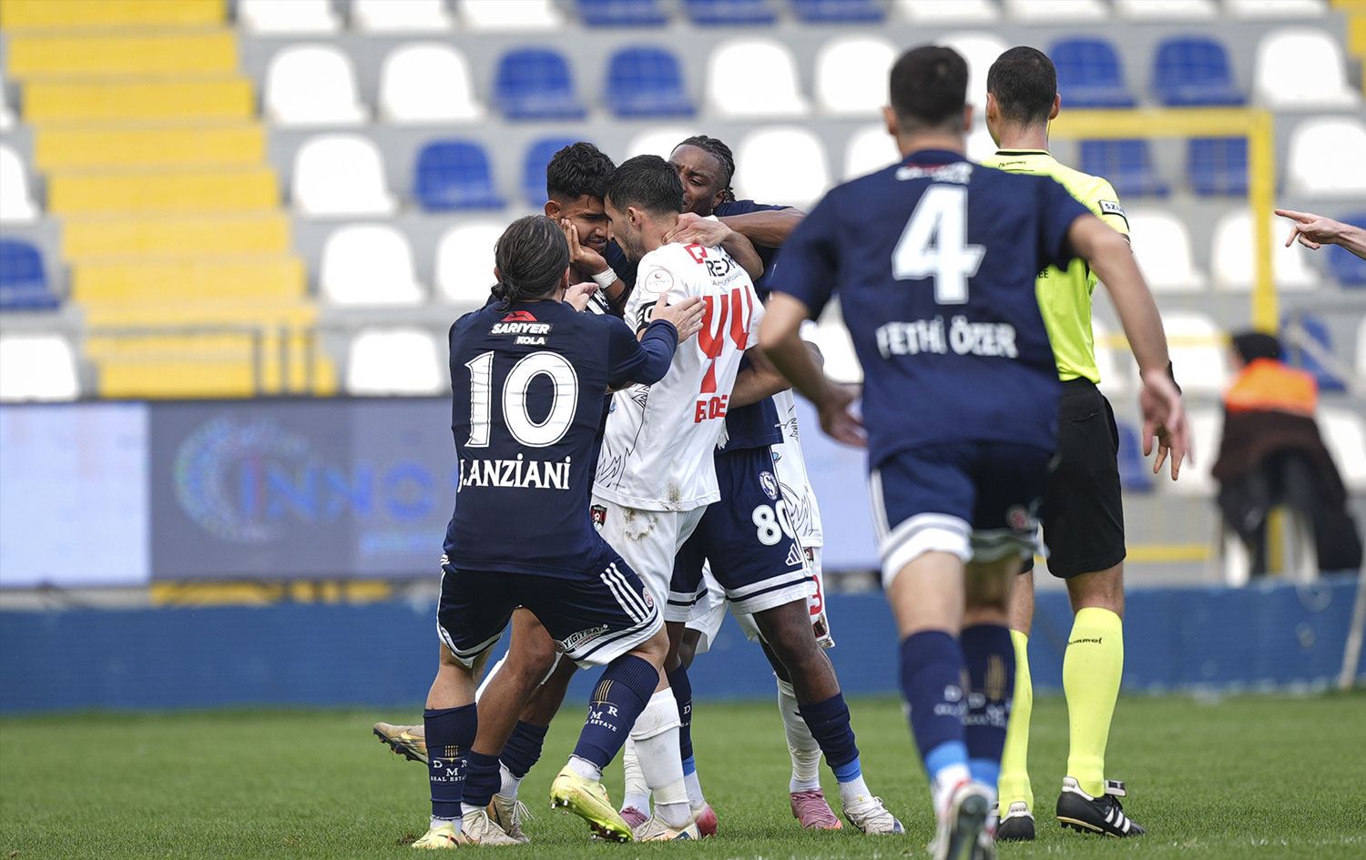 Sarıyer, gördüğü 2 kırmızı ve 4 sarı kartla sahada 9 kişi kalırken, Vanspor da 5 sarı kart gördü. Mücadele, hakemin 15 dakikalık uzatma süresi eklemesiyle tamamlandı.
