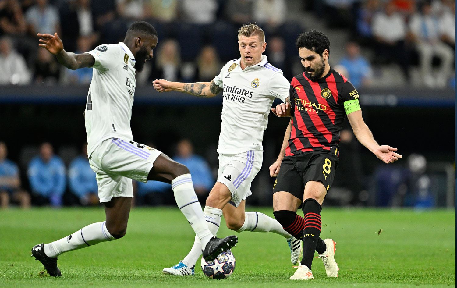 Real Madrid'in etkili olduğu anlarda, Camavinga'nın kendi sahasındaki top kaybı sonrasında gelişen City atağında, ceza sahası yayının hemen dışından topa çok iyi vuran De Bruyne, 67. dakikada kaleci Courtois'yı mağlup ederek takımına beraberliği getirdi.