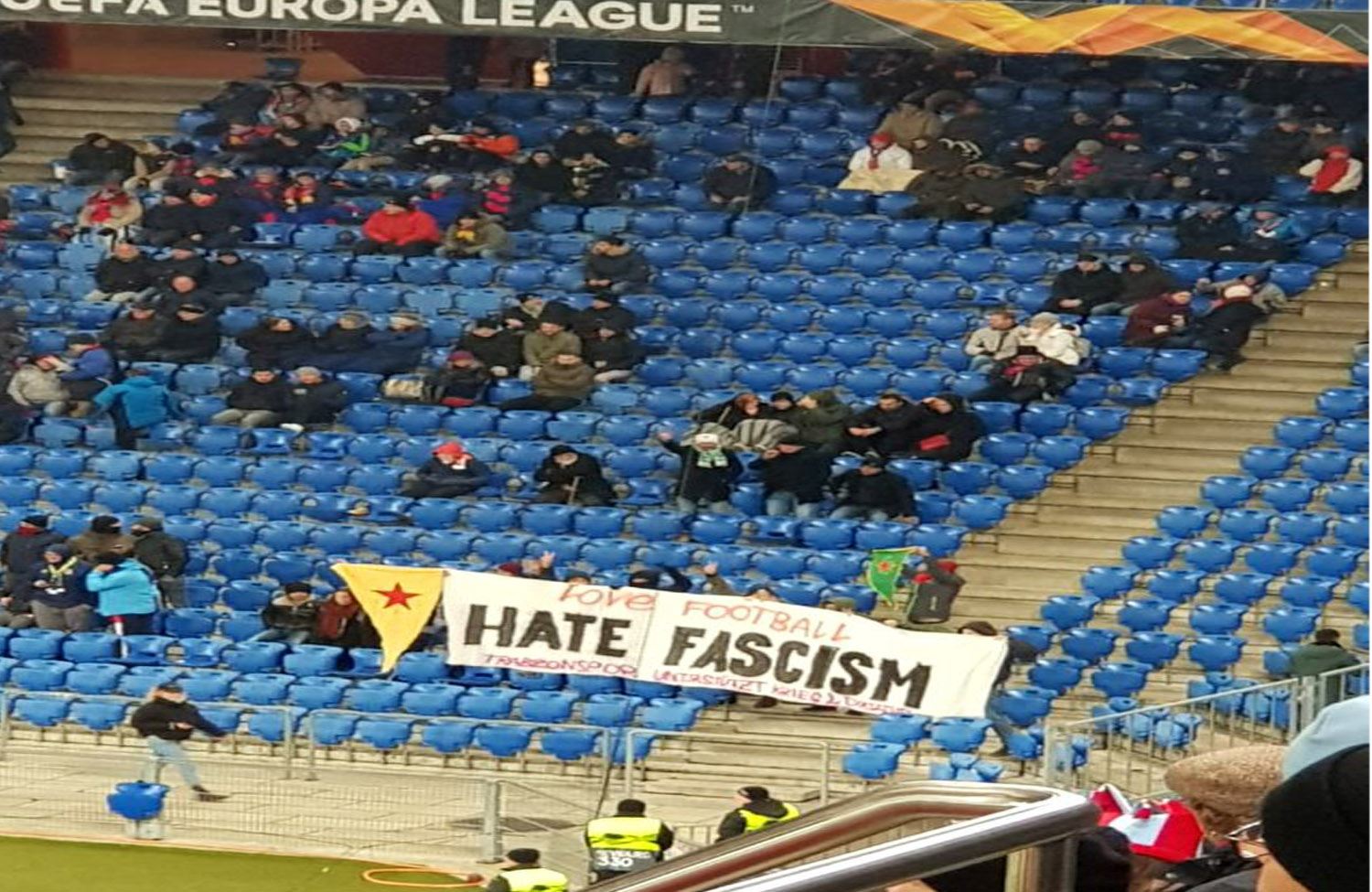 Haber Merkezi- UEFA Avrupa Ligi maçında Trabzonspor'un Basel'e konuk olduğu İsviçre ekibinin taraftarları YPG flamasını açtı.