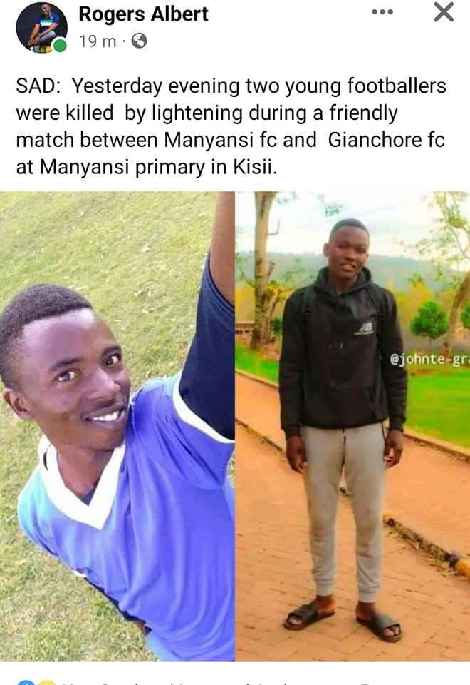 Kenya'da maç sırasında yıldırım isabet eden 2 futbolcu hayatını kaybetti.