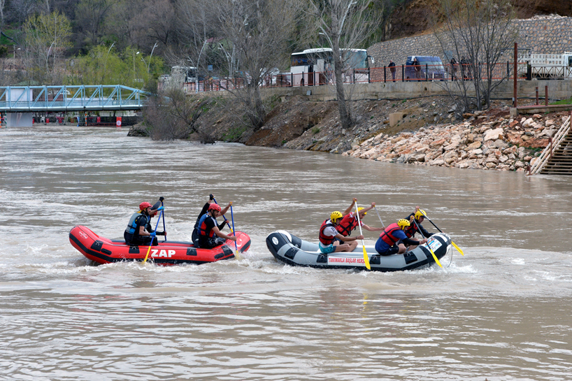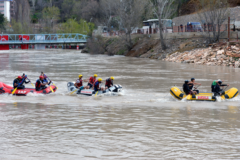 İlkbahar mevsimi dolayısıyla Munzur Çayı'nın debisinin en yüksek olduğu dönemde düzenlenen yarışlara katılan sporcular, zaman zaman zor anlar yaşadı.