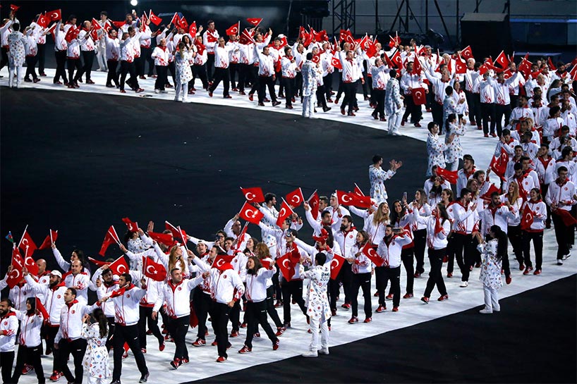 68 bin kişinin izlediği törende, oyunlarda yarışacak sporcular, ülkelerinin bayraklarıyla Olimpiyat Stadı'na girdi.