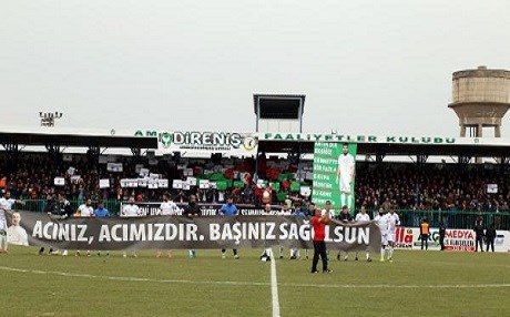 Diyarbakır Seyrantepe Spor Kompleksi’nde bugün yapılan maçın başında, konuk Erzurum Büyükşehir Belediyespor, maça, bir süre önce geçirdiği trafik kazasında hayatını kaybeden Amed Sportif'in eski kaptanı Şehmus Özer'i anarak, "Acınız acımızdır, başınız sağolsun" pankartı ile sahaya çıktı.