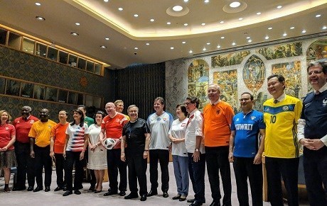 BMGK'nın 5 daimi üyesi ABD, Rusya, Fransa, İngiltere, Çin ile birlikte, geçici üyeler Hollanda, Polonya, İsveç, Kazakistan, Peru, Bolivya, Etiyopya, Kuveyt, Ekvator Ginesi, ve Fildişi Sahili büyükelçileri milli futbol takımlarının formalarını giyerek resim çektirdiler.