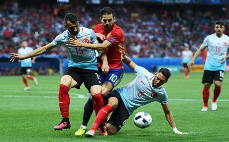 Türkiye, İspanya maçına Volkan Babacan, Gökhan Gönül, Mehmet Topal, Hakan Kadir Balta, Caner Erkin, Selçuk İnan, Ozan Tufan, Oğuzhan Özyakup, Hakan Çalhanoğlu, Arda Turan ve Burak Yılmaz ilk 11'i ile başladı.