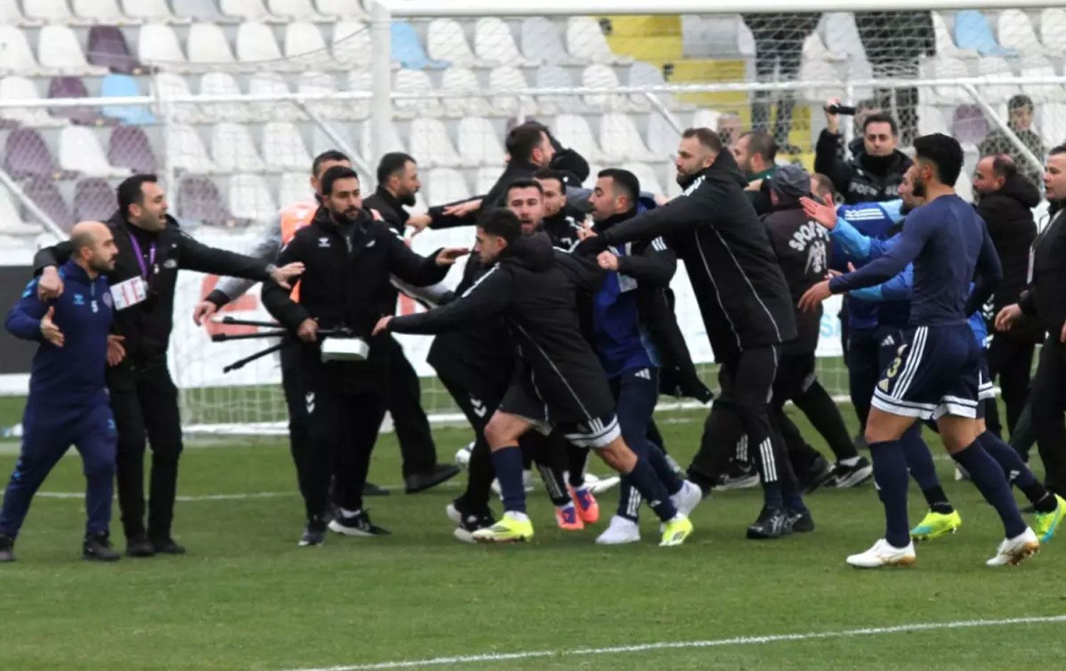 Futbolcular arasında başlayan laf dalaşına teknik ekiplerin de dahil olmasıyla tartışma kavgaya dönüştü.