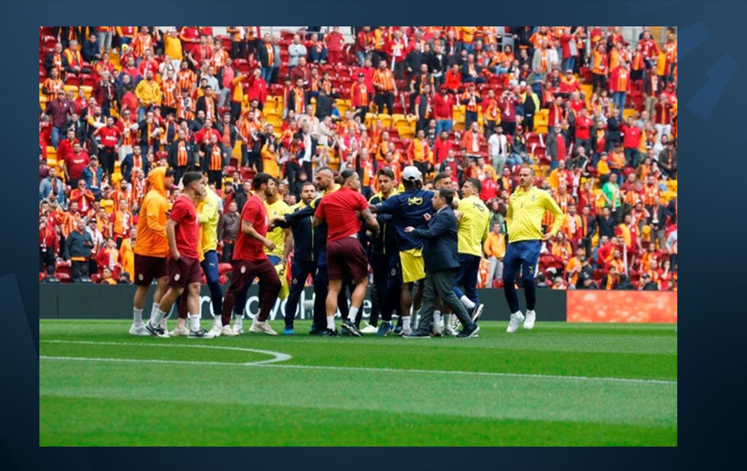 Trendyol Süper Lig'in 37. haftasında Galatasaray ile Fenerbahçe arasında oynanacak derbi müsabakası öncesinde oyuncular arasında arbede yaşandı.