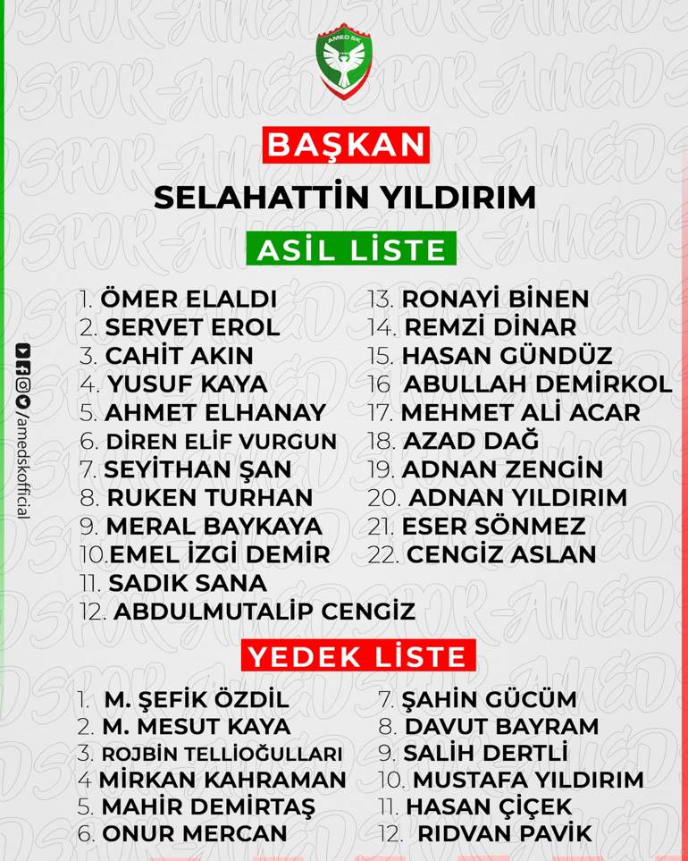 Amedspor yeni başkanını seçmek için tek liste ile girilen seçimde başkanlığa oy birliğiyle Selahattin Yıldırım seçildi.