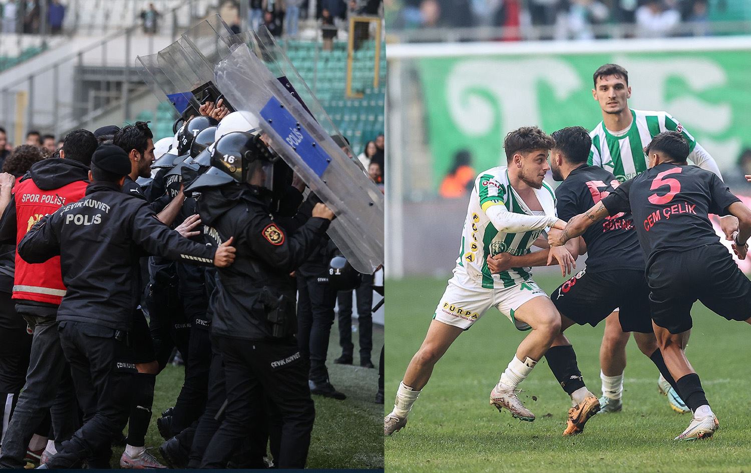 Bursa Yüzüncü Yıl Atatürk Stadı'nda Diyarbekirspor'un 25. dakikada Yasin Dülger ve 82. dakikada Bünyamin Yürür'ün attığı gollerle 2-0 önde olduğu karşılaşmanın 89. dakikasında, oyuncular arasındaki ikili mücadele sonrası olaylar çıktı.