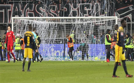 19 Şubat 2018'de oynanan maçta ev sahibi ekip taraftarları sahaya tuvalet kağıdı ve tenis topu atarak bu kararı veren Bundesliga yönetimini protesto etmişti.