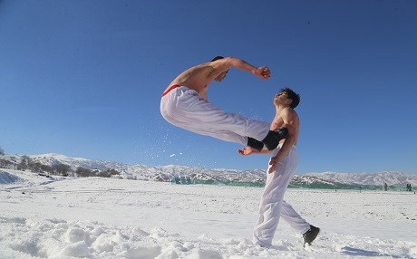 Süleymaniye (Rûdaw) – Süleymaniye’nin Pencevin ilçesinde çocuklar kar üzerinde karate eğitimi alıyor.