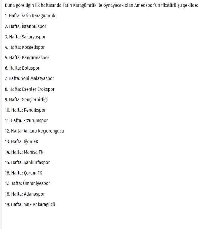 Haber Merkezi – Trendyol 1. Lig’de 2024-2025 sezonu fikstürü belli olurken Amedspor ilk maçını İstanbul deplasmanda Fatih Karagümrük ile oynayacak.