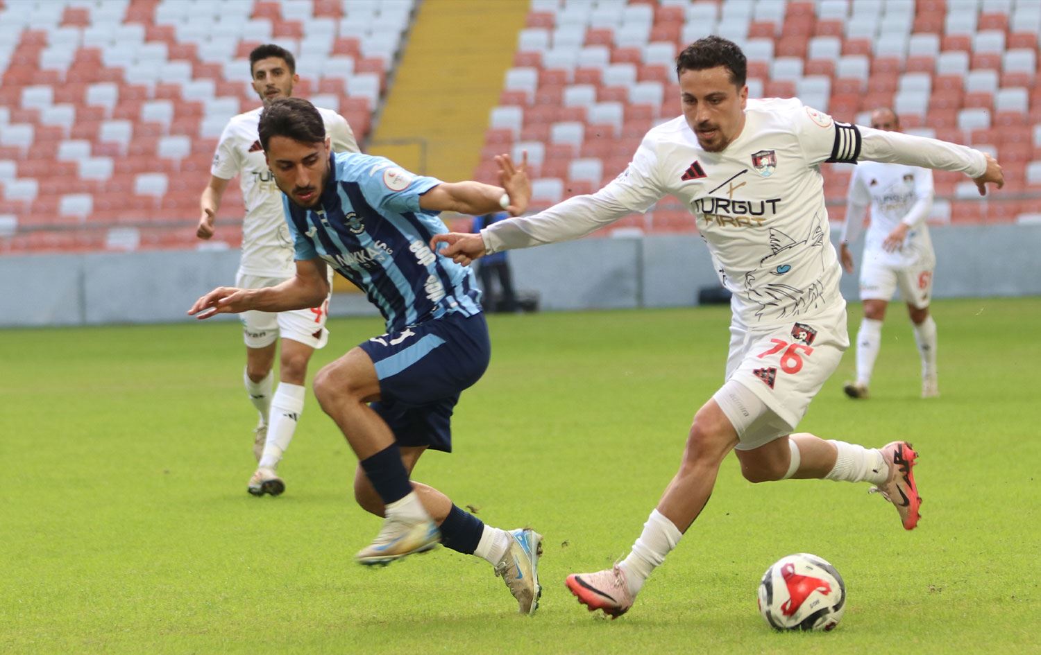 İki takım oyuncuları, Adana Demirspor'un maruz kaldığı zorlu süreci protesto etmek amacıyla maçın ilk dakikalarında hareketsiz kalarak sessiz bir dayanışma gösterisi yaptı.