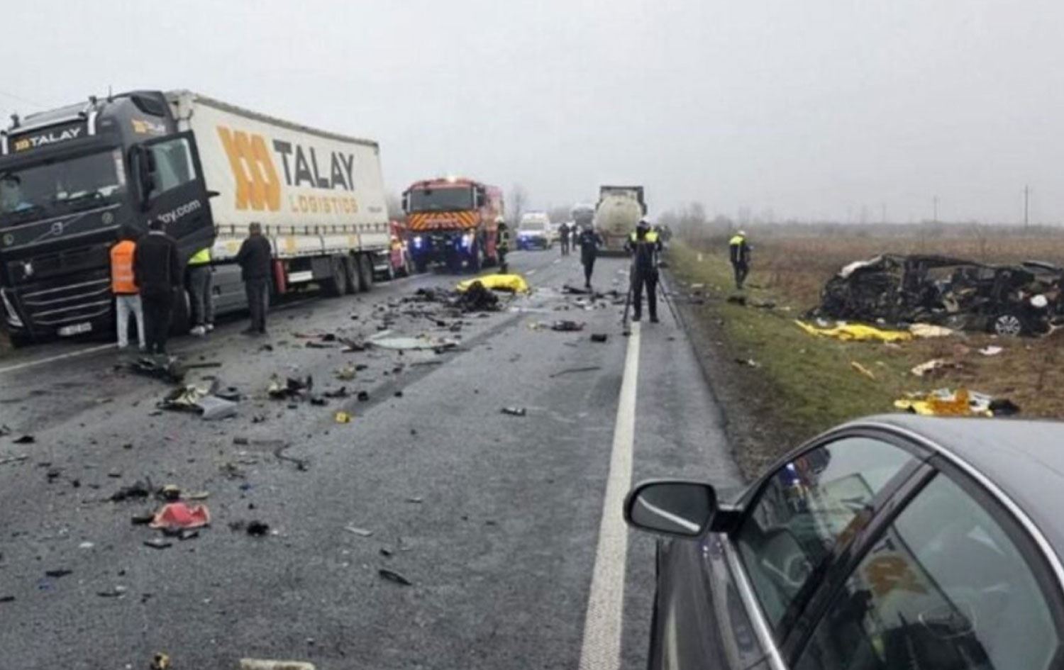 PAOK taraftarlarını taşıyan minibüs, Lugojelul kenti yakınlarında DN6-E70 otoyolunda sollama esnasında karşı yönden gelen tırla çarpıştı.