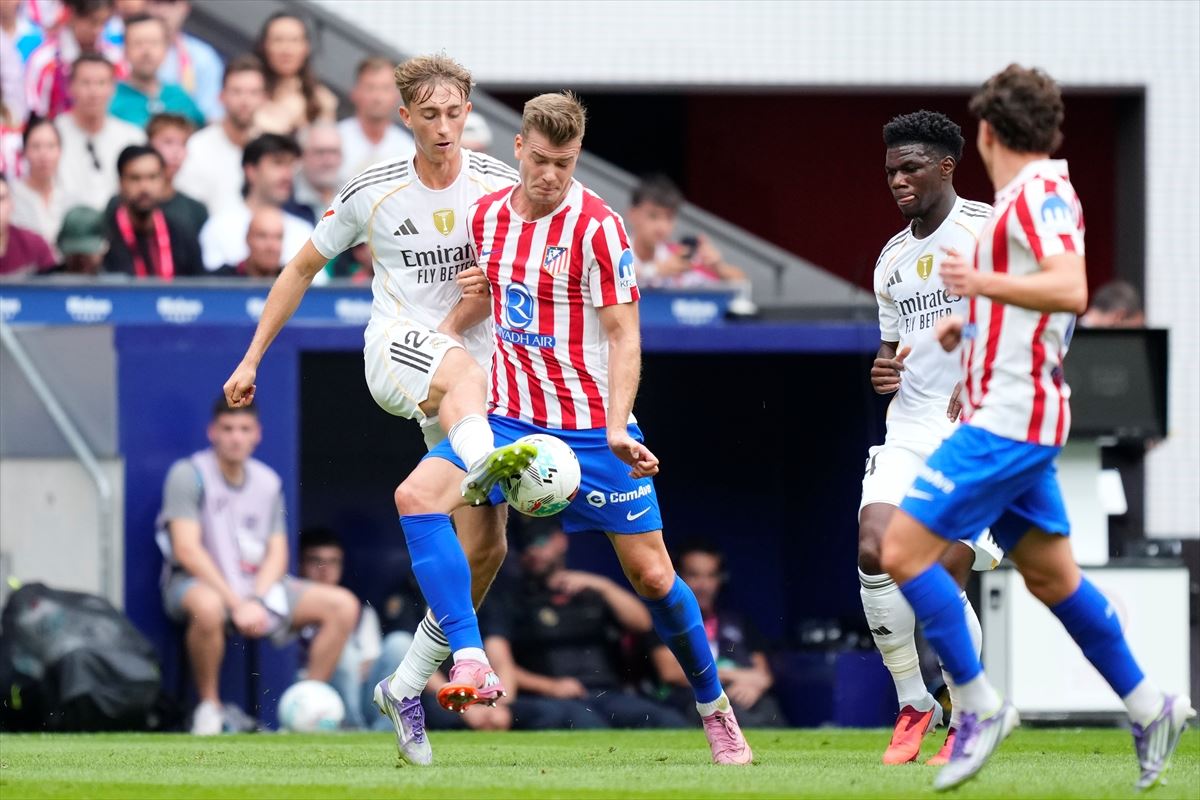 Haftaya lider giren Real Madrid, deplasmanda 14. dakikada Robin Le Normand'un golüyle 1-0 geriye düşerken 25. dakikada milli futbolcu Arda Güler'in derinlemesine uzun pasını gole çeviren Kylian Mbappe, eşitliği sağladı.