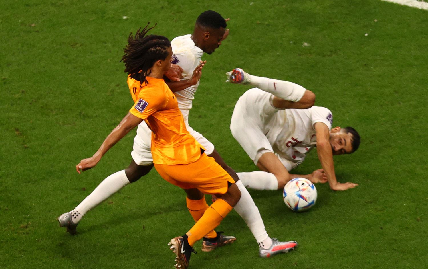 Al Bayt Stadı'daki mücadele karşılıklı ataklarla başladı. Katar güçlü rakibi karşısında hücumda zaman zaman etkili oldu. Katar'ın kanatlardan üst üste ortalar yapması Hollanda'nın kaptanı Van Dijk'ı da kızdırdı. Van Dijk, arkadaşlarına toparlanmaları yönünde sert uyarılar yaptı.