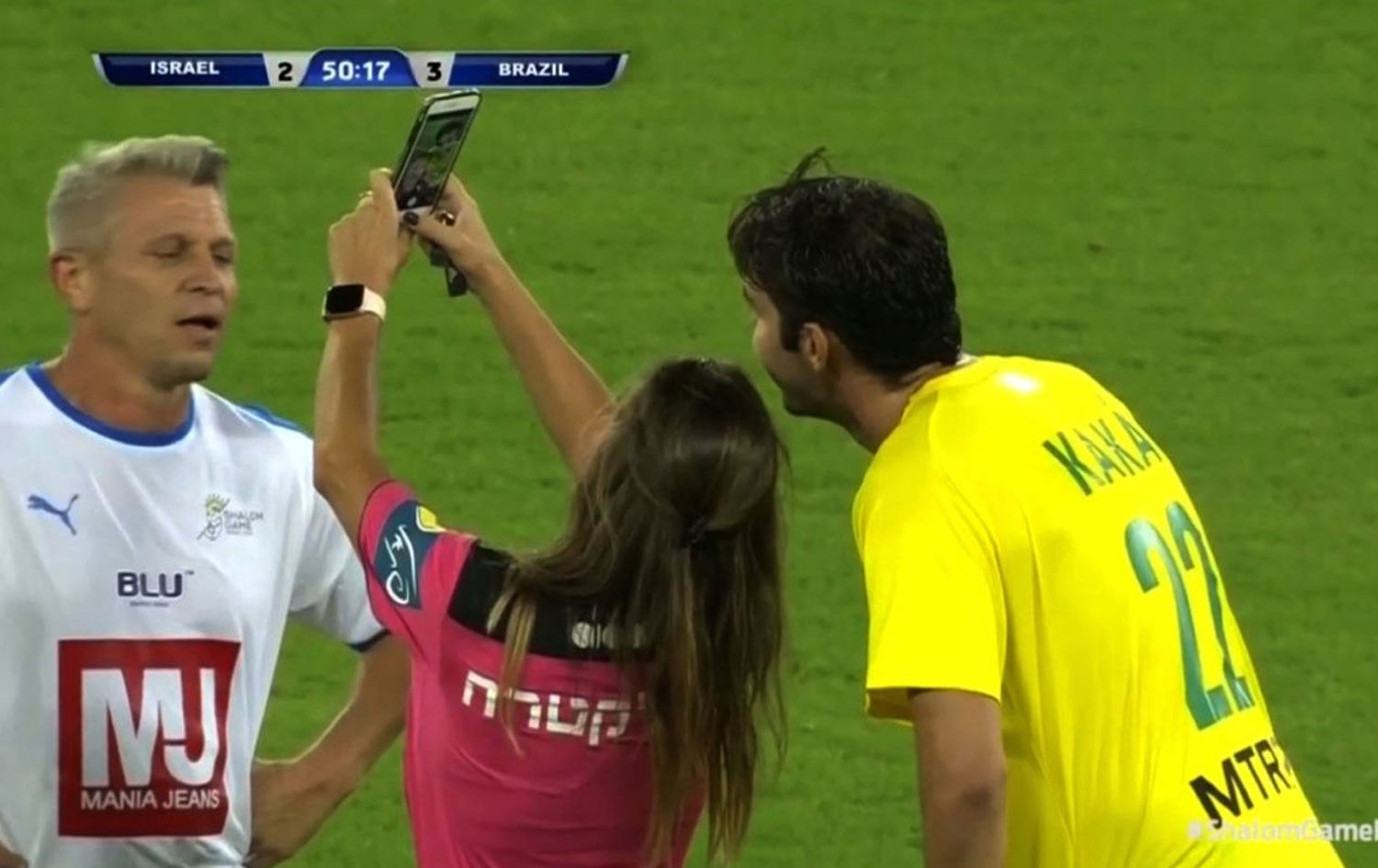 Haber Merkezi - İsrail ve Brezilya efsane futbolcuları arasında oynanan dostluk maçında kadın hakem Brezilya efsanelerinden Kaka Leite'ye önce sarı kart gösterdi ardından oyuncu ile selfie çekti.