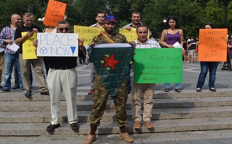 New York’tan Haseke’ye giderek Halk Savunma Birlikleri (YPG) saflarında IŞİD’e karşı savaşan Robert Rose da protesto gösterisine katıldı.