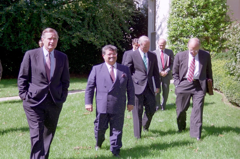 George H. W. Bush'un başkanlık döneminin en önemli olayı 1990 yılında Saddam Hüseyin'in Kuveyt'i işgal etmesi ve buna karşılık olarak George H. W. Bush'un birçok Avrupa ve Ortadoğu ülkesinden aldığı destekle Kuveyt'e müdahale ederek Irak ordusunu zorla Kuveyt'ten çıkartmasıdır.