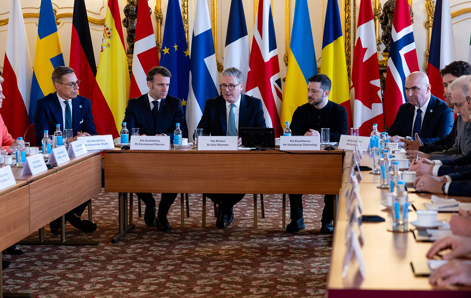 İngiltere Dışişleri Bakanlığının tarihi Lancaster House yerleşkesinde düzenlenen ve ana gündem maddesi Ukrayna'da kalıcı barış ve Avrupa güvenliği olan zirveye Ukrayna, Fransa, Almanya, Danimarka, İtalya, Hollanda, Norveç, Polonya, İspanya, Türkiye, Kanada, Finlandiya, İsveç, Çekya ve Romanya'dan devlet liderleri ve bakanlar katıldı.