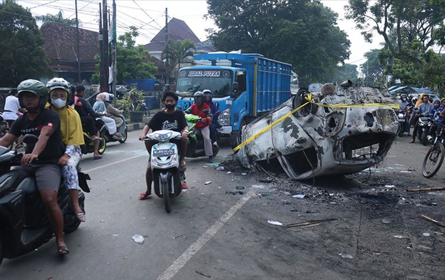 Doğu Java Polis Şefi Nico Afinta, yaptığı açıklamada, gece geç saatlerde maçın sona ermesinden hemen sonra taraftar grupları arasında çıkan kavgaların çevik kuvvet polisinin göz yaşartıcı gaz kullanmasına neden olduğunu ve sıkılan gazın taraftarları paniğe sevk ettiğini söyledi.