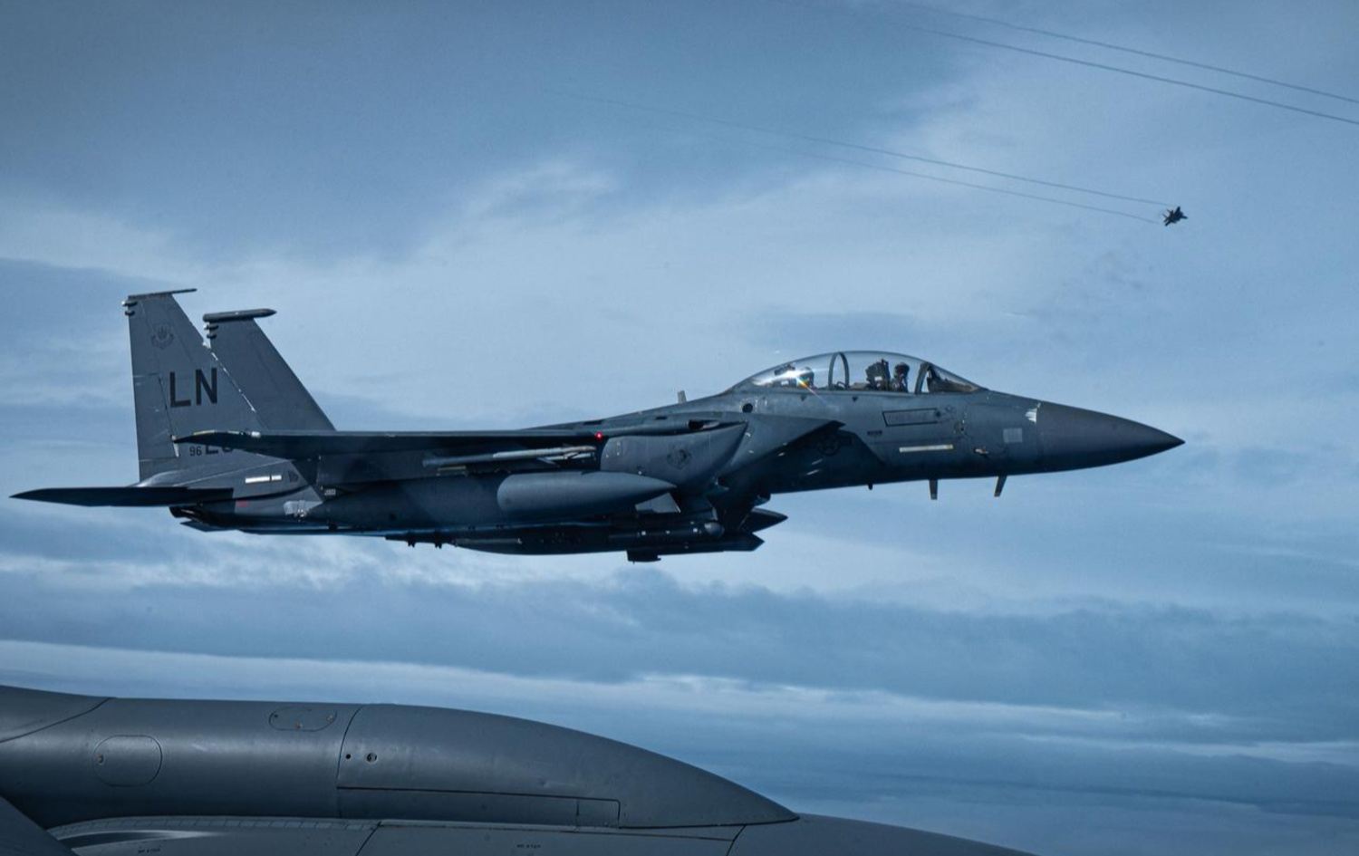 Foto: İngiltere'deki RAF Mildenhall Hava Üssü'nde konuşlu 48. Avcı Filosu'na ait ABD Hava Kuvvetleri'nin F-15E Strike Eagle savaş uçağı, Kuzey Denizi semalarında eskort görevinde, 15 Ağustos 2024. (ABD Hava Kuvvetleri)