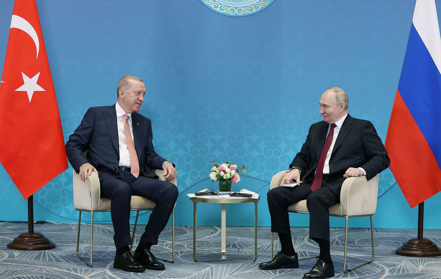 Haber Merkezi – Türkiye Cumhurbaşkanı Recep Tayyip Erdoğan, Şanghay İşbirliği Örgütü 24'üncü Devlet Başkanları Zirvesi için gittiği Kazakistan'ın başkenti Astana'daki temasları kapsamında, Rusya Devlet Başkanı Vladimir Putin ile bir araya geldi.
